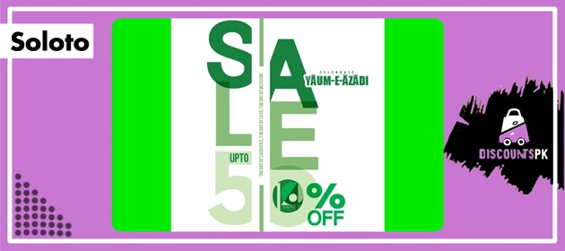 Celebrate your independence day with Soloto. Soloto is offering upto 50% off . This is the hottest sale in the Pakistan. Free Shipping on all orders above Rs.2500. Nationwide delivery within 3-5 working days